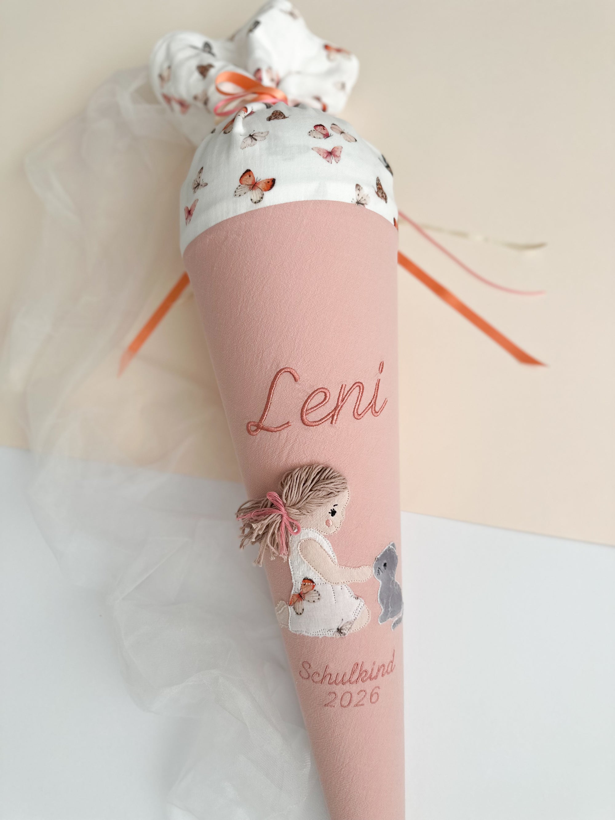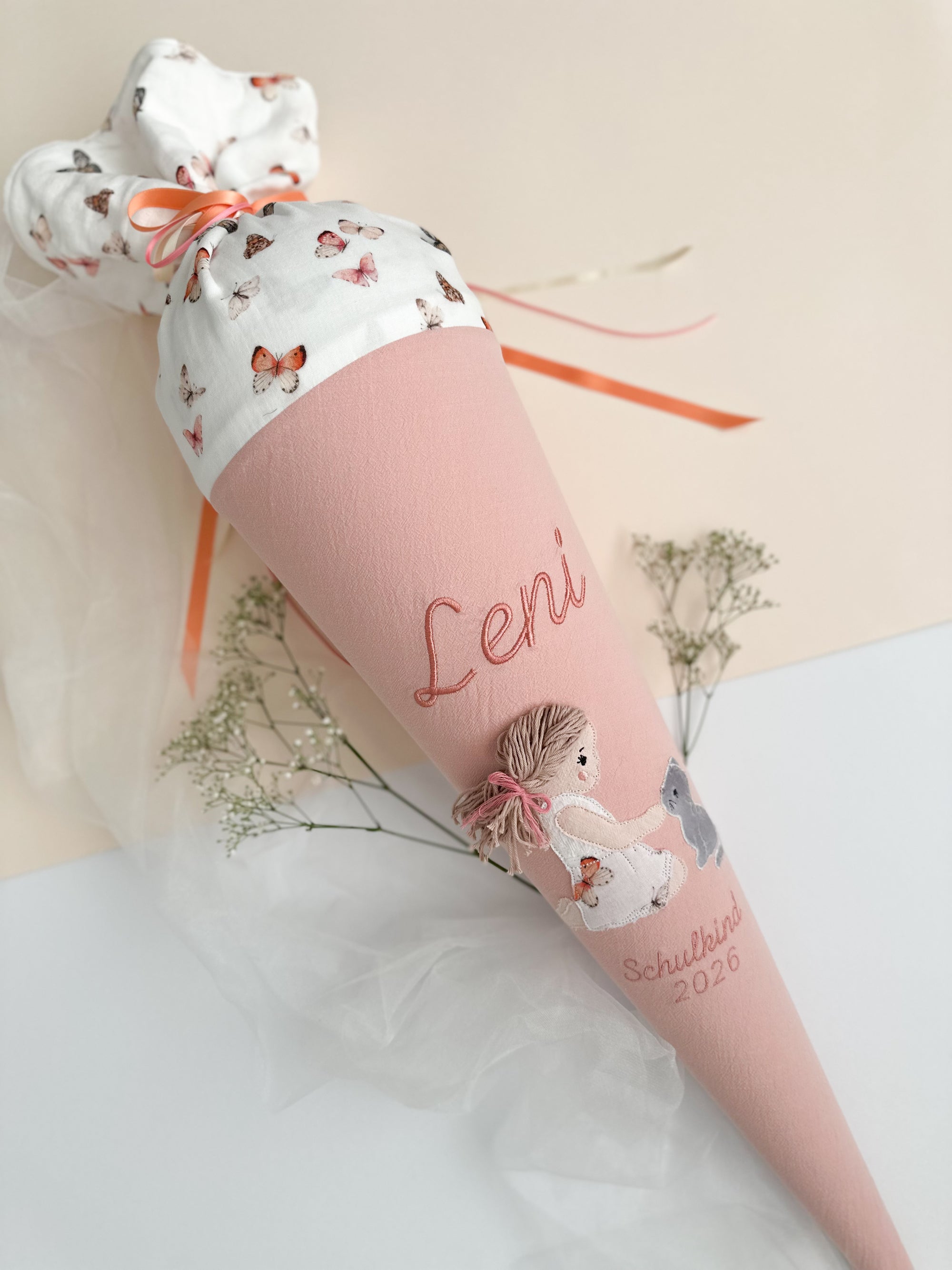 Schultüte Mädchen mit Katze in 70cm und 35cm