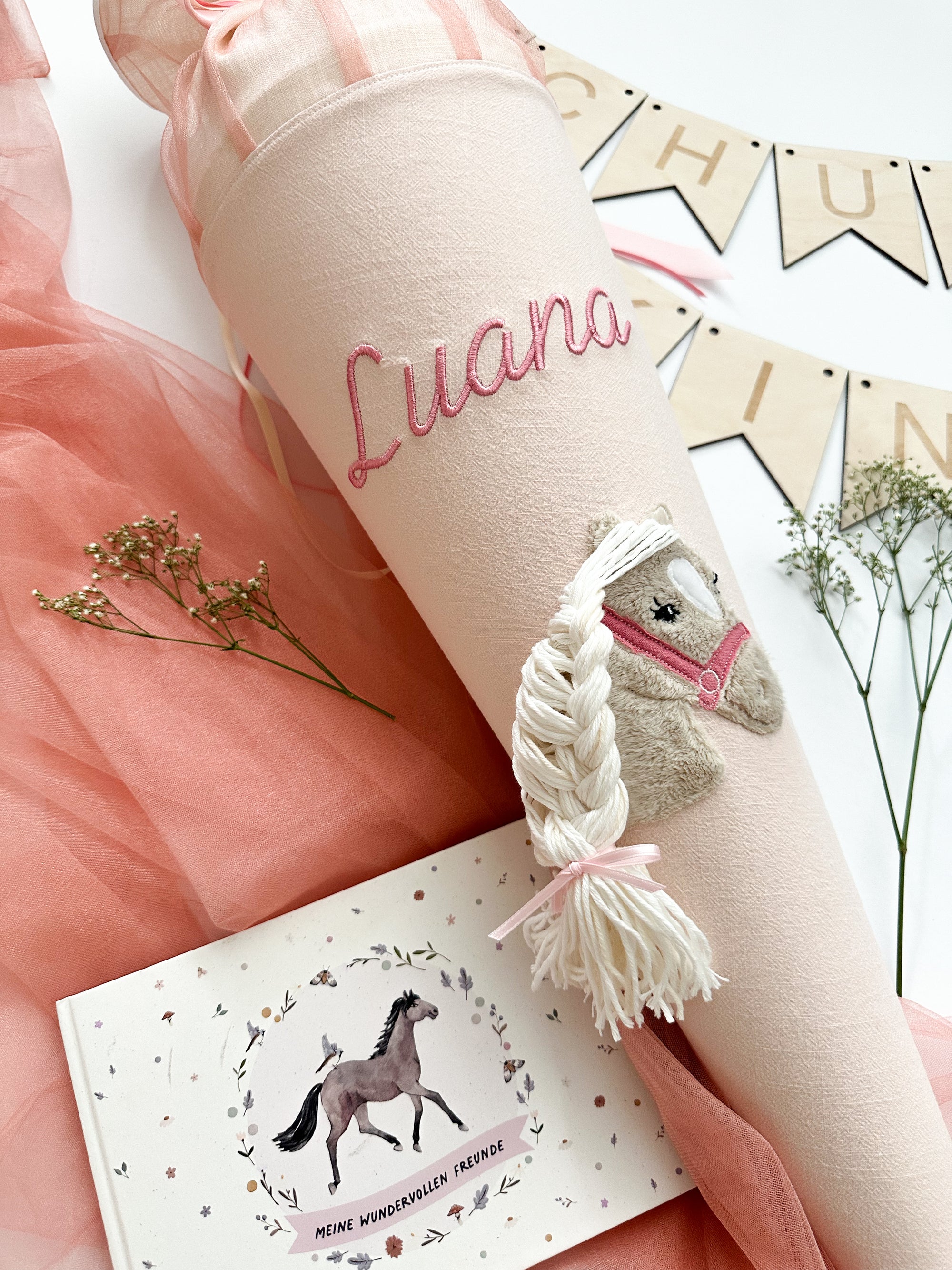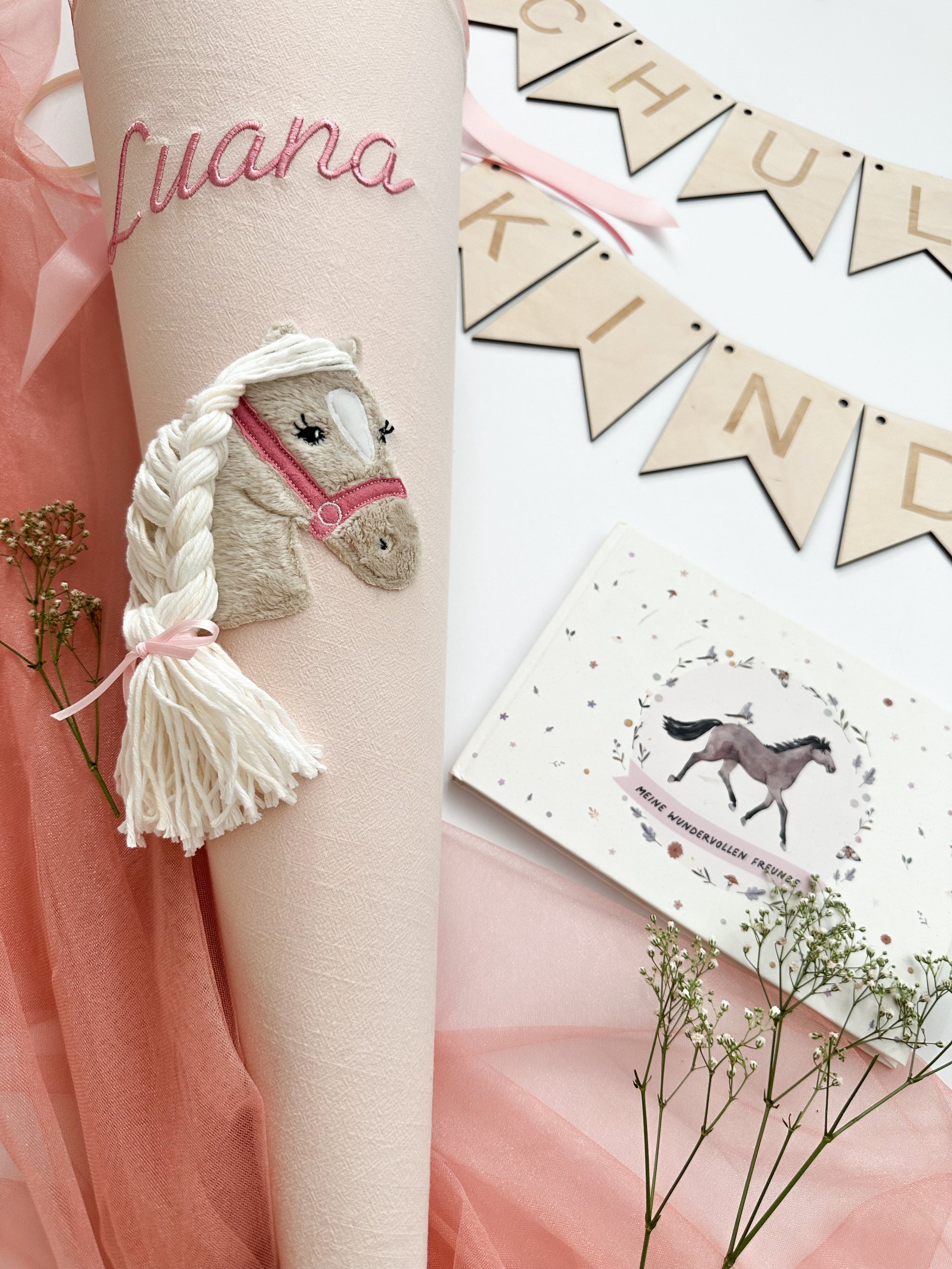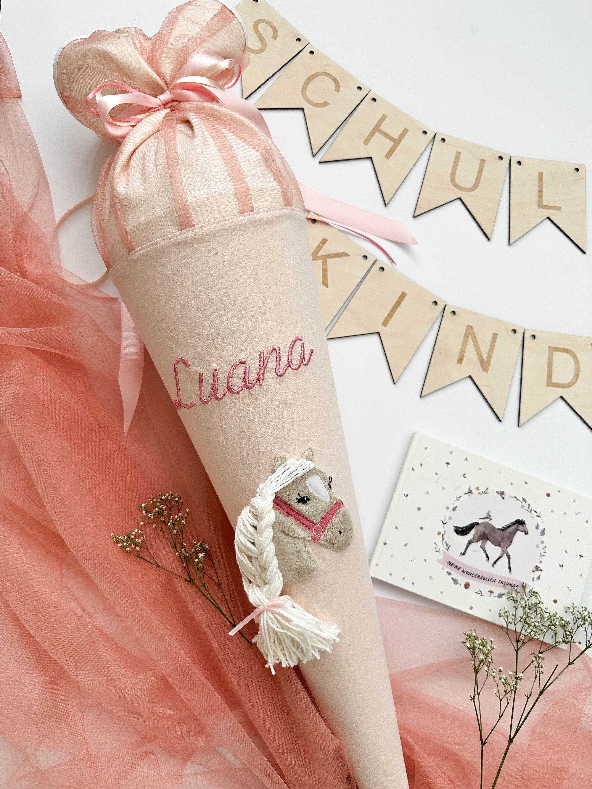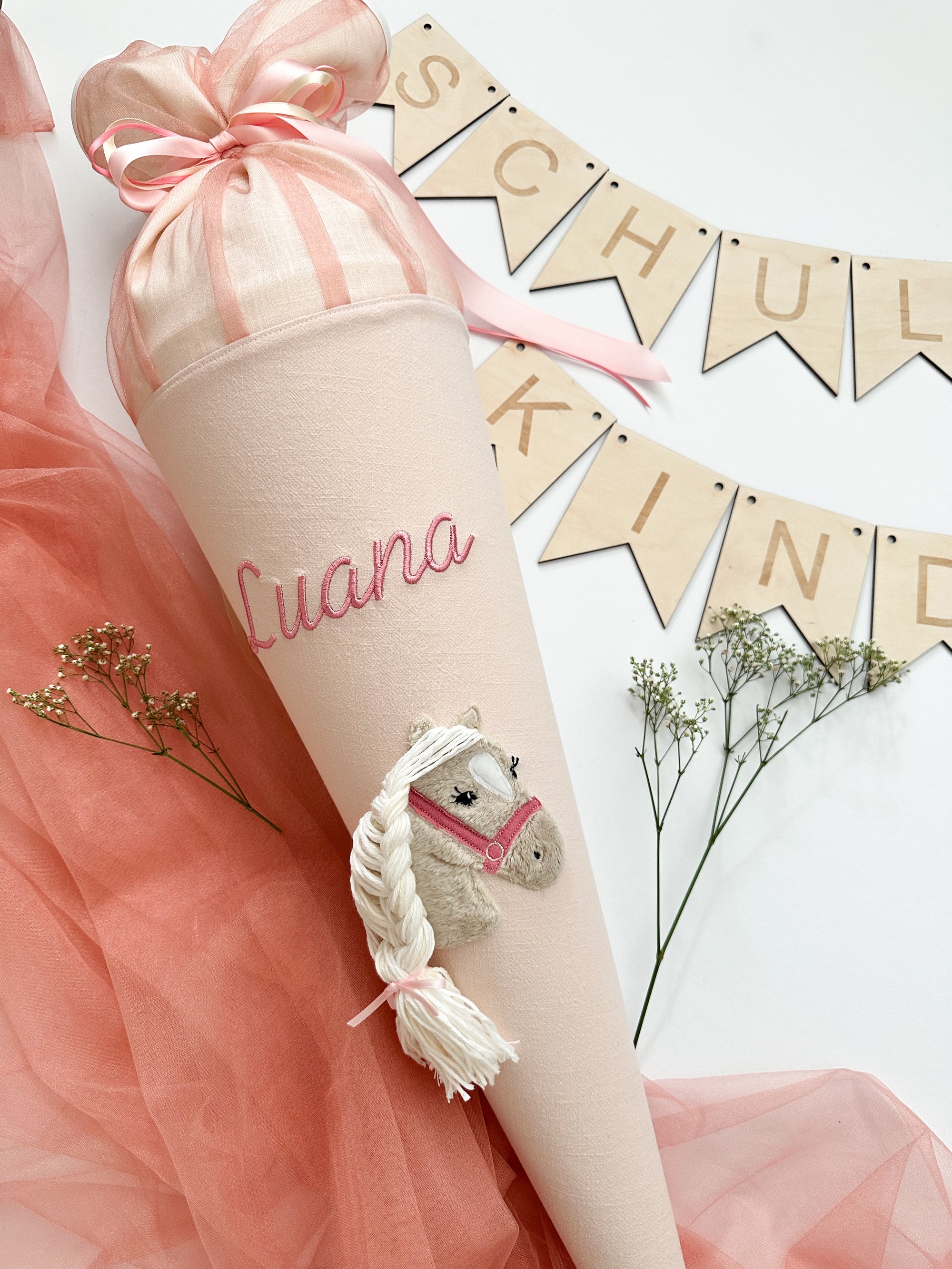Schultüte Pferd mit Wollhaaren in 70cm und 35cm